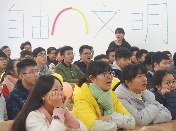 活动开始时,两位主持人以简短的开场白拉开了此次活动的帷幕。一曲《我的中国心》紧扣此次团组织生活的主题,随后的朗诵《我的梦,中国梦》、小品《团在我心》、演讲《做一个优秀的团员》、故事分享、PPT展示《团的意义》以及穿插在其中的小游戏《对党知多少》都体现了本次团组织生活的主题。作为结束表演的歌曲《团歌》全体2017级电子信息工程的同学们更是齐声合唱,唱出了对党和团的深刻理解。