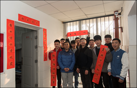 在送对联给同学们之余,陈奕宇老师还和各个寝室的同学们合影留念,让同学们在这一出门就“瑟瑟发抖”的冬天也能感受到这无声的温暖。