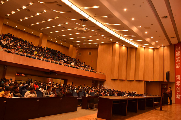 讲座上,胡书记从时代与形势、立业与创业等方面,声情并茂地向大家详细介绍了应该如何规划我们的职业生涯。胡书记强调,在新时代,新形式下,我们唯有发展,因为发展才是解决一切问题的根本。在讲到立业与创业时,胡书记说:“不管你的理想多么光芒万丈,你的身体才是革命的本钱。”胡书记还告诫我们,互相尊重很重要,“希望凡是你们遇到的人,认识的人,碰面一定要打招呼,那是你对别人的尊重。”胡书记还提到,我们要主动走出去,只有主动走出去,心灵才会更积极更阳光,更能用心,用情,竭尽全力做好人生中的每一件事。讲座最后,胡书记用他的经典“名言”——“open your mouth,open your mind!”为此次讲座画上完美的句号。
