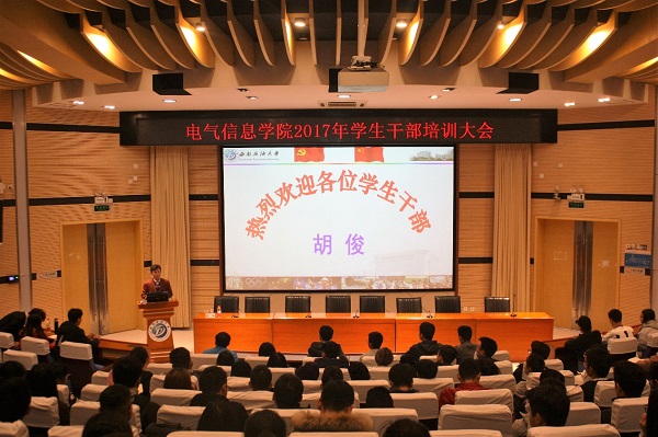 12月7日下午15:00,电气信息学院在思学楼A114召开了2017年全体学生干部培训大会。本次培训大会由电气信息学院党委副书记胡俊老师主持并担任主讲。此次会议旨在总结学生干部的工作,明确学生干部的位置,强调学生干部的作用,并通过开展培训,为接下来的学生工作做好铺垫,为今后更好地建设班级促进电气信息学院的发展奠定良好基础。