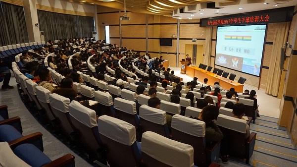“做人必须求真务实,以这种态度去处理生活中的每件事情才是我们最正确的选择”,胡书记在培训一开始便告诉学生干部该如何做人。紧接着,胡书记从学生干部应具备的素质出发,结合时代发展的需要,对学生干部提出了新要求,他指出学生干部必须做一名传播正能量、有纪律和有规矩意识的人。随后,胡书记强调,学生干部不同于普通同学,必须认清自己的身份、要有明确的政治意识和服务意识,还要有以大局为重和敢为人先的责任担当。最后,胡书记对学生干部提出了希望,希望学生干部在做好学生工作的同时,充分锻炼自己谋划、组织、协调和领导等各方面能力,作有为青年,同心共筑美好中国梦。